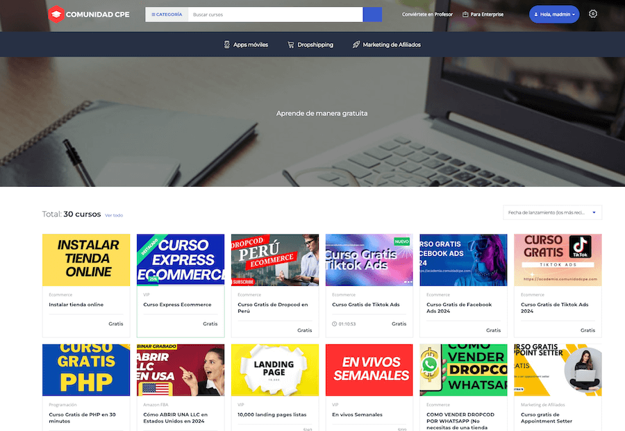 Somos una empresa de Perú especializados en tiendas online. Contamos con una academia digital, donde podrás aparender GRATIS cómo crear tu negocio digital.